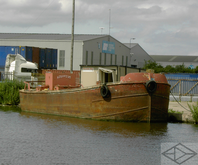 A small steel converted barge 'AQUARIUS' in Goole Docks. 2011