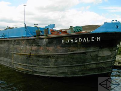 A Leeds and Liverpool canal boat which is not a 'Short Boat'. Built approx 72 feet by 14 feet, these craft only operated west of Wigan, and along the Leigh Branch, but could not fit the majority of the Leeds and Liverpool canal's locks across the Pennines. "Originally operated by Ainscough Flower Mill in Burscough, and later until the 70's by Albert Blundel on the Bridgwater Canal carrying coal from Boothtown to Manchester." (Quoted from Ian Monk.)AMBUSH and VIKTORIA (another 'long boat') are generally kept together. The only other known 'long boat' is the wooden 'SCORPIO', currently (2011) in poor condition, at the Ellesmere Port museum. (NG)