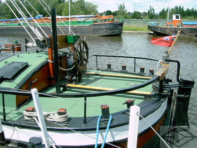 KAMA, built 1903 by Watsons/Gainsboro; market boat on the Humber after WW2; last berth in Castleford in the 90s. Kama had been used as a sailing barge on the River Trent and the Humber until 1954, when she was converted to a motor barge in Barton (with a Kelvin K2) and used as a market boat on the Humber. Kama was converted to a house-boat in the end of the 60s or in the 70s, had been in a very bad state, but is now rebuilt to her old (sailing barge) shape, with the restoration of the K2 ongoing. (GH 2014)