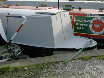 An unusual shape to a back cabin - but it appeared to be on an old hull. This was at Stone in 2011. Any ideas please?