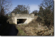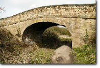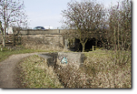 For another mile or so the empty canal bed, occasionally with some water, winds towards Nottingham. It passes under another original stone bridge and arrives near the city boundary at Coventry Lane - |