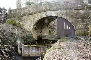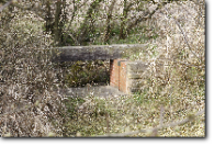 Immediately beyond this bridge, however, is a garden centre. This began life in an old canalside stone quarry but has migrated from the quarry right onto the canal line. This is a shame, because immediately beyond the garden centre the empty canal bed resumes. Of course the garden centre might like the idea of a rebuilt canal through their premises - |